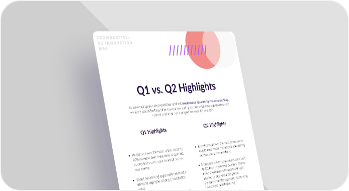 CROWDBOTICS: Q2 INNOVATION MAP Q1 vs. Q2 Highlights As we wrap up our second edition of the Crowdbotics Quarterly Innovation Map, we felt it would be helpful to share a few highlights that show how app development interest and priorities changed between Q1 and Q2: Q1 Highlights Q2 Highlights Healthcare was the most active sector (a Entertainment was the most active sector 40% increase over the previous quarter) due to new media challengers and waning as providers continued to adapt to the worries about the pandemic. new normal. More data-driven applications were built Social networking apps were the most in- in Q2 than in previous quarters. Clients demand app type among Crowdbotics hired Crowdbotics to help build apps users. related to Business Intelligence, Performance Management, Accounting, The real estate industry pushed for more Investment, and Reporting. modern tools that automate clunky, decades-old processes. Consultants are embracing app development and digitizing education and Organizations within the Education sector tools to scale their businesses and reach begin to dabble with app development, more and larger clients. though budgets remained fairly tight. Construction continues to grow as a Dual booms in retail investment and sector, with more clients hiring crypto trading had users clamoring for Crowdbotics to automate logistics, new ways to grow their personal wealth. In shipping, and contractor management. the mid-market, services emerged to smooth over inefficiencies in the ever- growing gig economy. 14